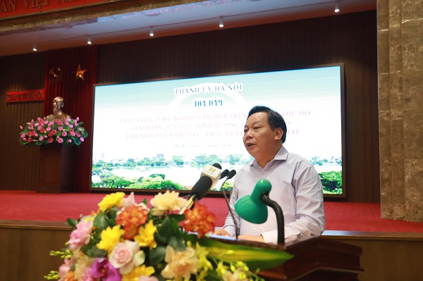 Phát biểu đề dẫn tại toạ đàm, Trưởng ban Tuyên giáo Thành uỷ Bùi Huyền Mai cho biết, buổi toạ đàm là một trong những hoạt động thiết thực đưa Nghị quyết Đại hội lần thứ XIII của Đảng và Nhiệm kỳ Đại hội Đảng bộ TP lần thứ XVII vào đời sống xã hội. Từ đó, Hà Nội tiếp tục xác định và khẳng định tiềm năng, lợi thế trong việc phát huy “sức mạnh mềm” văn hóa, thúc đẩy phát triển hài hòa giữa kinh tế và văn hóa, khơi dậy ý chí và khát vọng đổi mới sáng tạo, đưa văn hóa và con người Hà Nội thực sự trở thành giá trị tinh thần to lớn, nguồn lực quan trọng quyết định phát triển Thủ đô.